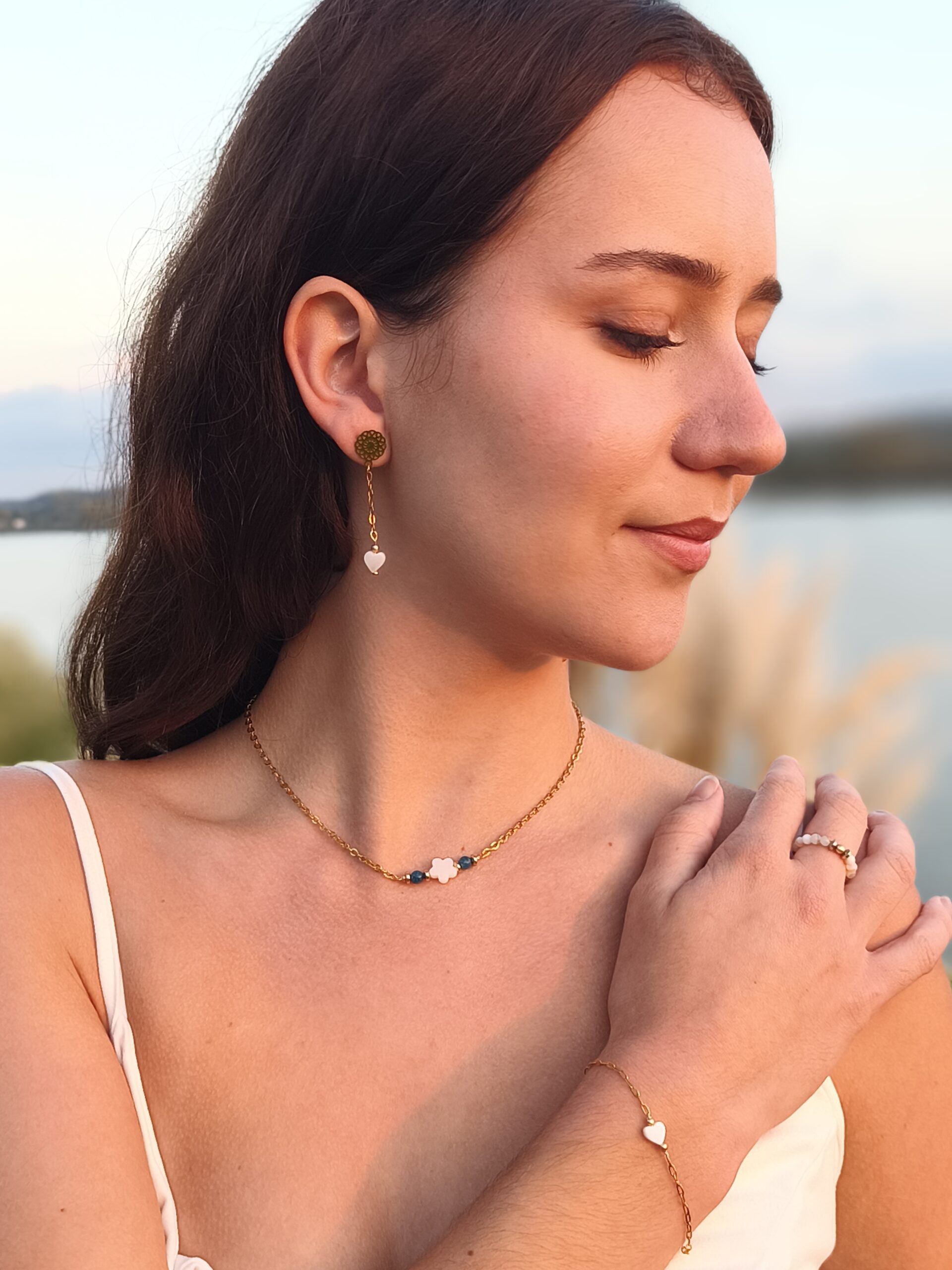 Fait main et unique, chaque cœur en coquillage illumine votre allure et accompagne vos moments précieux, du quotidien aux soirées.