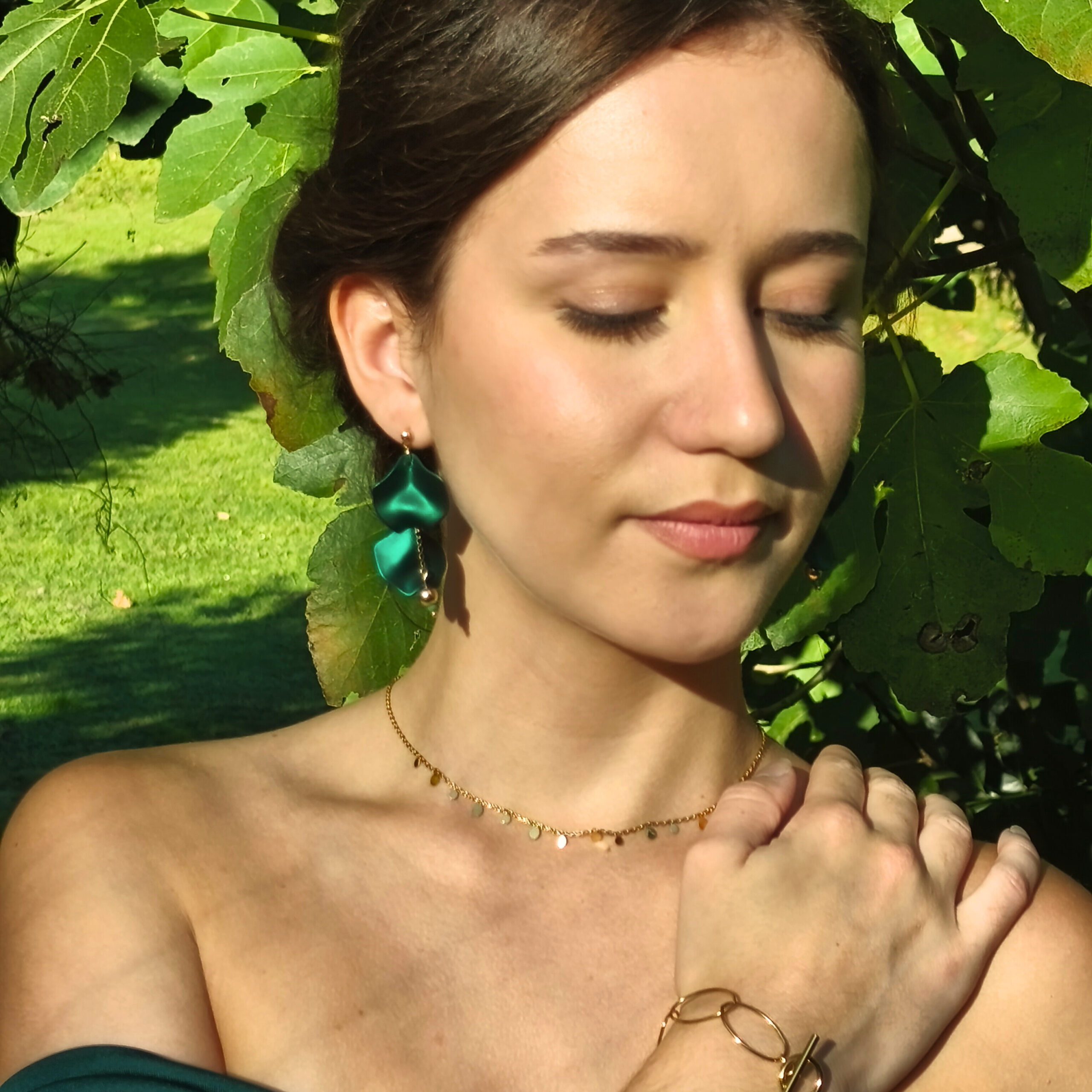 Avec Émeraude, pièce unique de la collection Feuilles de Soie, vous vous sentirez absolument unique et sublimerez votre tenue.