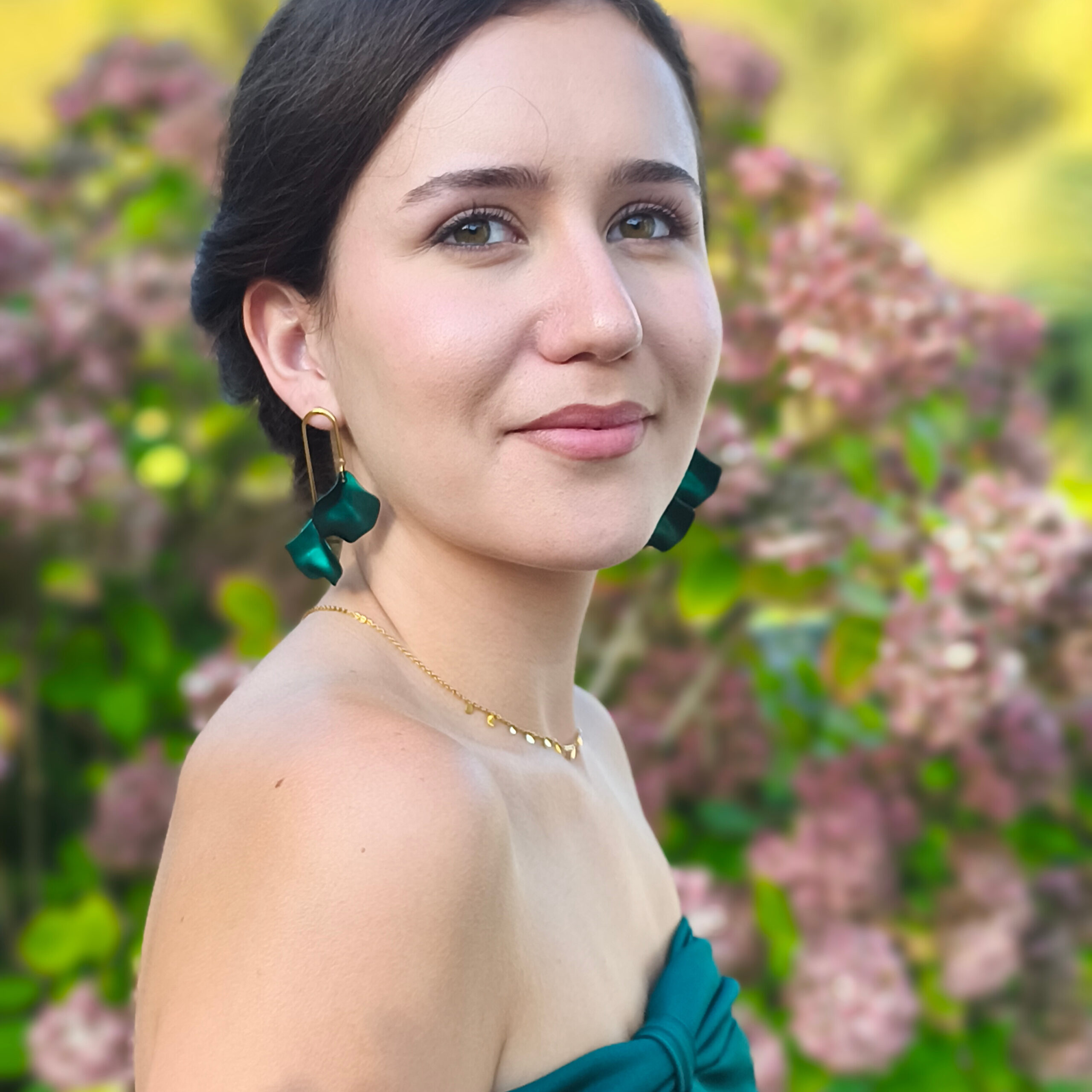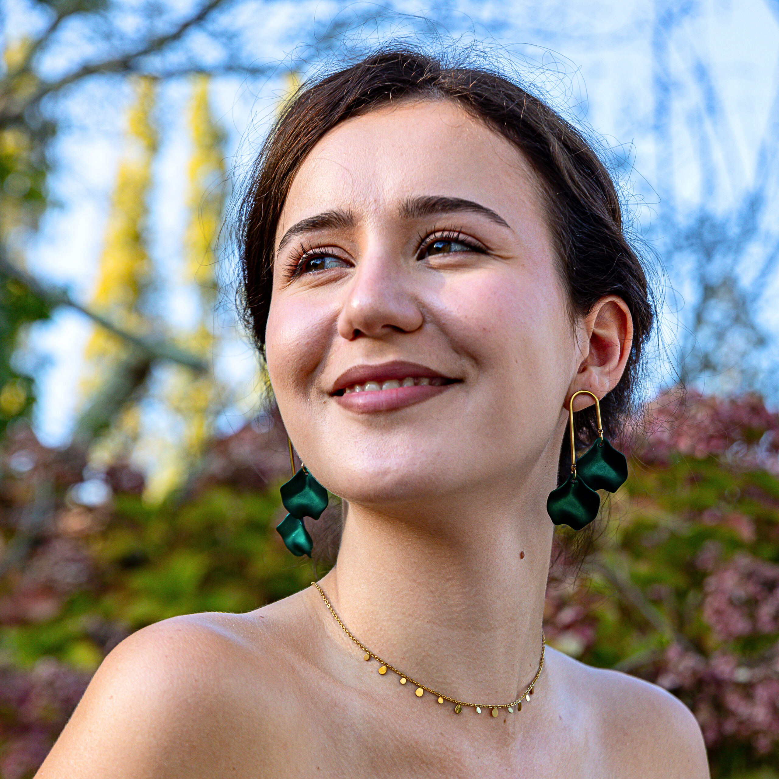 Le modèle Satin Boréal, issu de la collection Pétales de Soie, dévoile des pétales satinés au mouvement délicat. Une pièce unique qui illuminera votre allure et sublimera chaque tenue avec finesse