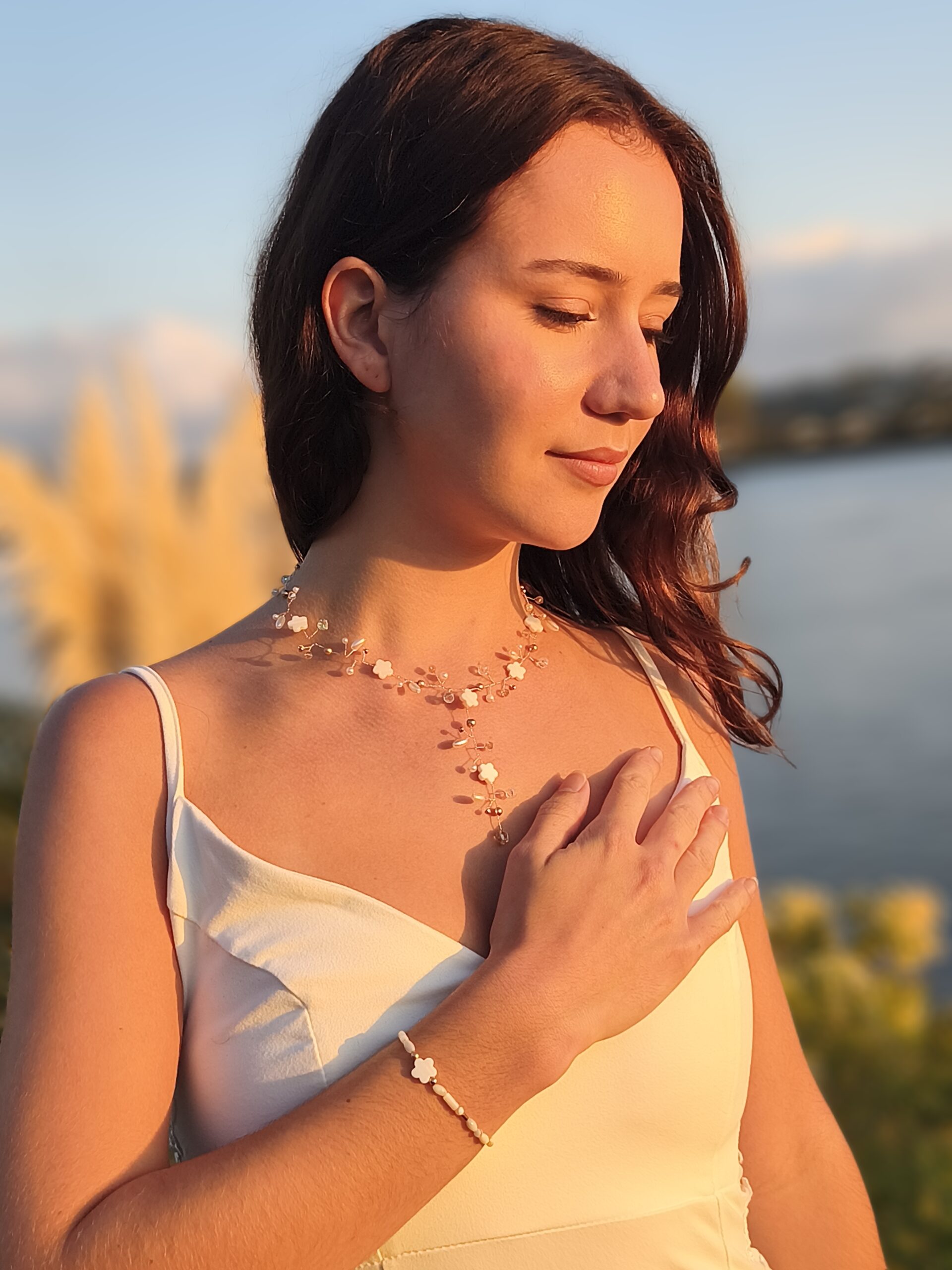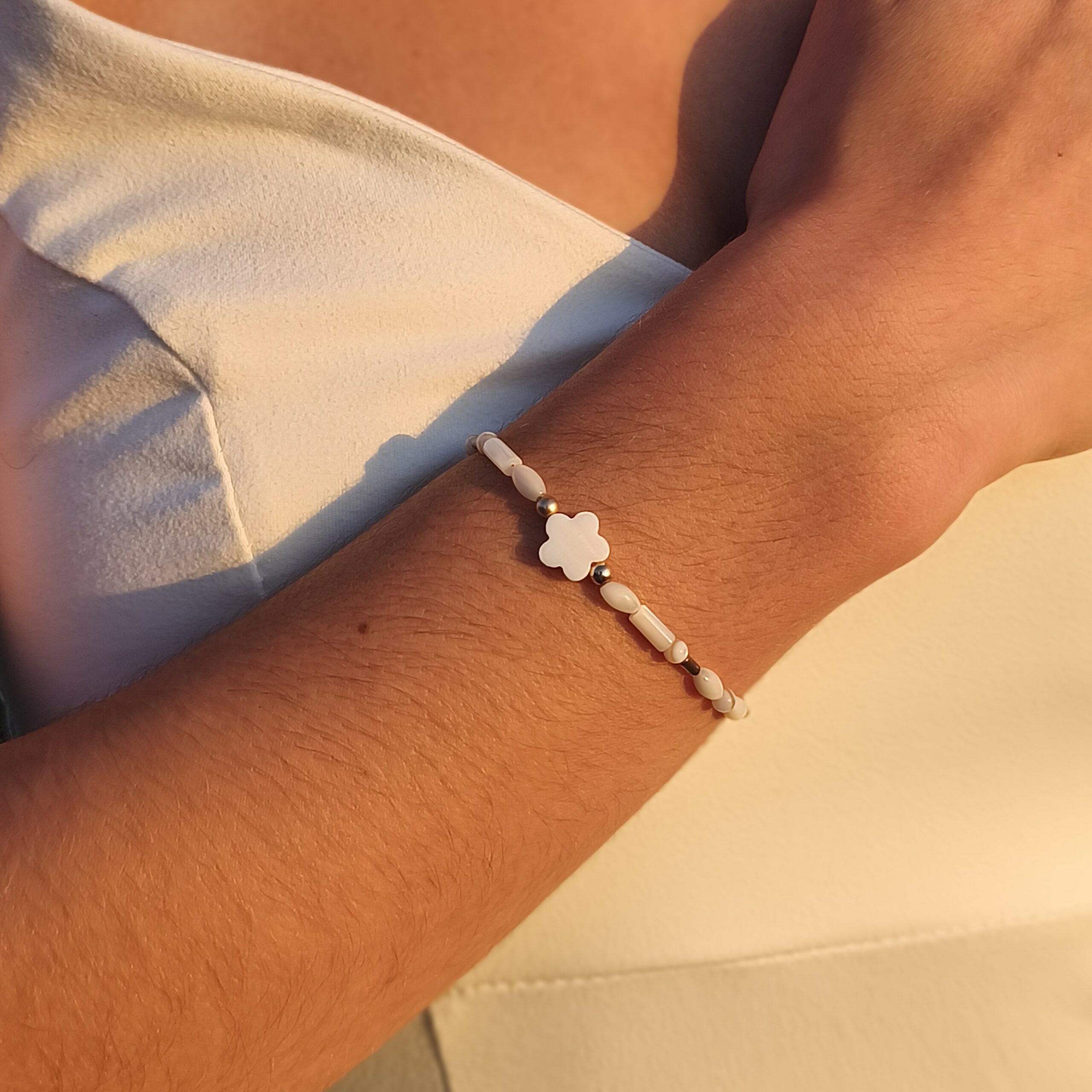 Ce bracelet raffiné est une création artisanale, entièrement fait main avec soin et passion. Composé de perles naturelles aux teintes douces et lumineuses, il incarne l’équilibre parfait entre simplicité et élégance. Idéal pour un mariage, une cérémonie ou une occasion particulière, il se porte aussi aisément au quotidien pour ajouter une touche délicate à chaque tenue.