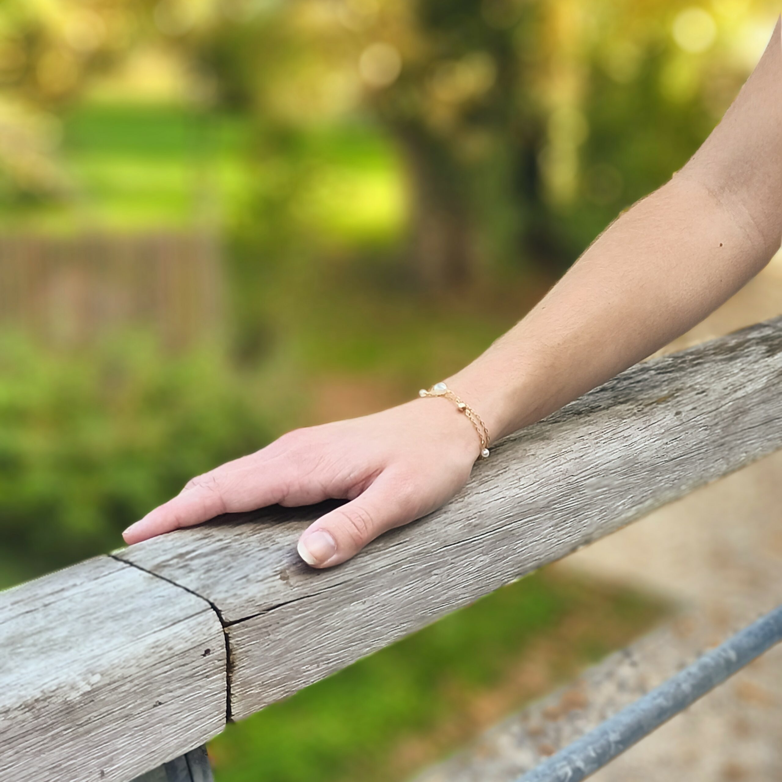 Ce bracelet aux perles nacrées enlace le poignet avec une douceur éclatante.